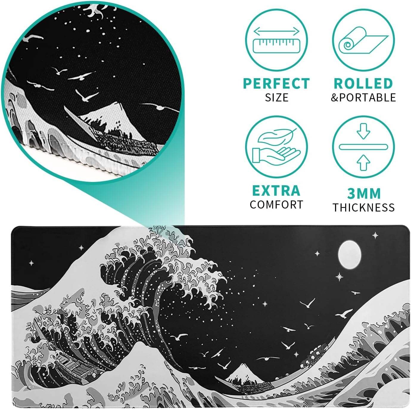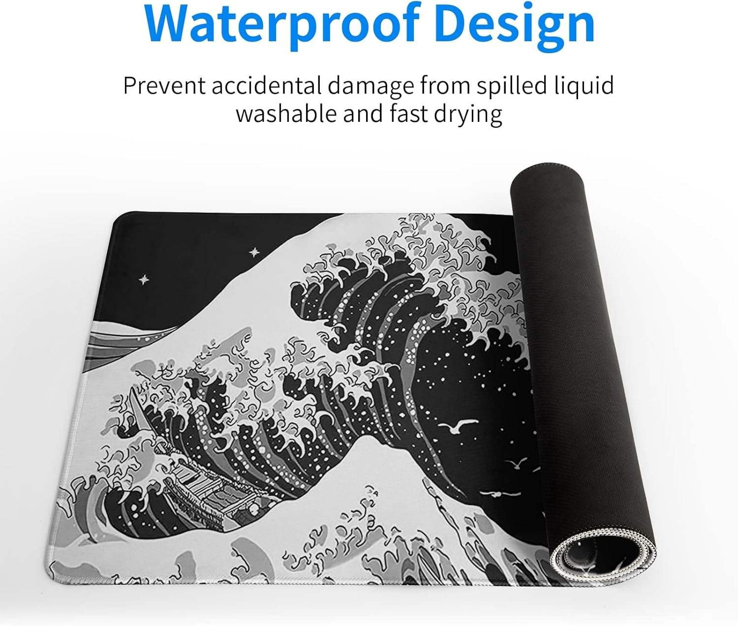 This desk pad blends bold Japanese-inspired wave art with everyday practicality—because your desk deserves more than boring plastic. The smooth surface gives your mouse effortless glide, while the 3mm cushioned base adds just the right amount of comfort for long hours (or late-night “just one more task” sessions).